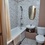 Санузел с теплыми полами, душевой кабиной, подвесным унитазом, вместительным шкафчиком.