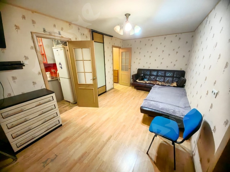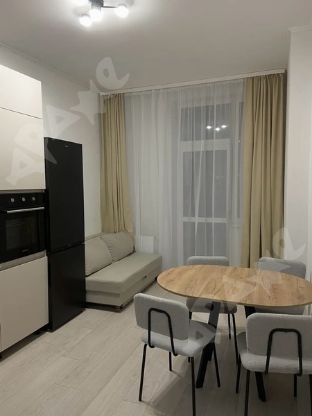 Квартира на 15-м этаже, из мебели есть все необходимое для проживания диван, стол, стулья, стиральная машина, холодильник.