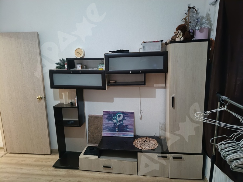 В спальне: стенка, шкаф- купе, двухспальный каркас кровати (есть возможность приобрести матрас если у вас нет своего в счет аренды).