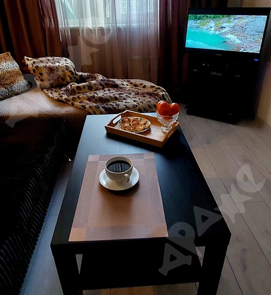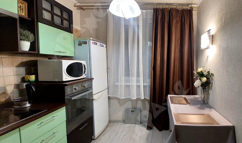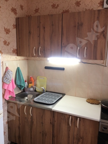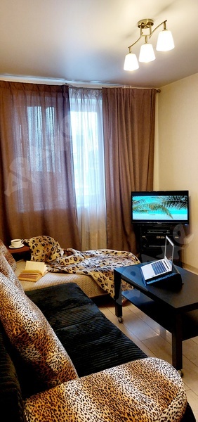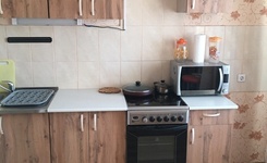Уютная однокомнатная квартира на 8 этаже для 1 или 2 человек площадью 30 кв.м. Балкон застеклен. Раздельный санузел. Есть раскладной диван и кровать под потолком с лесницей-шкафом, как на фото. Рабочее место. Есть кухонный гарнитур. В наличии холодильник, плита, микроволновка, электрочайник, стиральная машинка. В квартире стоят счётчики на воду.