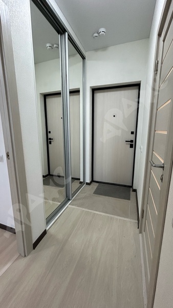 В коридоре встроенный шкаф, зеркальные двери, теплый пол