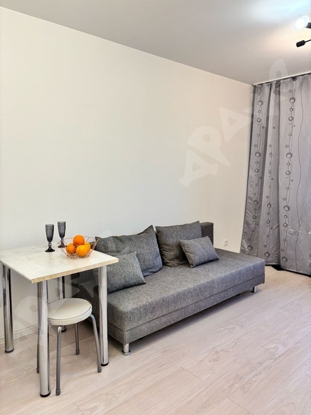 Этаж 4/25, есть лоджия, светлая, уютная, абсолютно новая студия на долгосрочный и не долгосрочный период. Пионеpcкий paйoн, 5 минут до остановок общecтвеннoгo транcпортa и TЦ Пapк Хaус пешком. До центра города всего 10-15 минут на транспорте. Закрытая территория ЖК с прогулочными и спортивными площадками. Окнa квартиры выходят во двор и на Основинский парк. 4 этаж, дом оснащен 3 грузопассажирскими лифтами. В квартире имеется вся необходимая мебель и техника: диван, платяной шкаф, кухонный гарнитур, холодильник, индукционная плита, микроволновка, стиральная машина, электрический чайник, стационарный фен, посуда для приготовления, столовые приборы, утюг и гладильная доска, сушилка для одежды, телевизор smart с антенной и возможностью подключения к сети «Интернет». Дополнительные предметы можно согласовать отдельно. Установлены приборы учета на электроэнергию, воду и отопление. Возможно содержание мелких домашних животных (не кошки, не собаки).