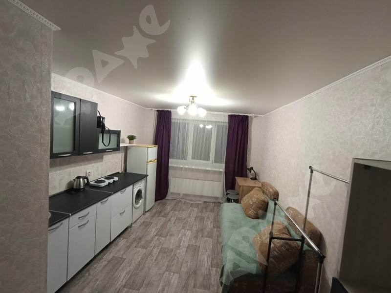Сдается в аренду небольшая студия, 18 метров, после косметического ремонта, с мебелью и техникой. Стоит кровать, стол, шкаф, кухонный гарнитур, небольшая плитка, холодильник, стиральная машина автомат. Свой санузел.