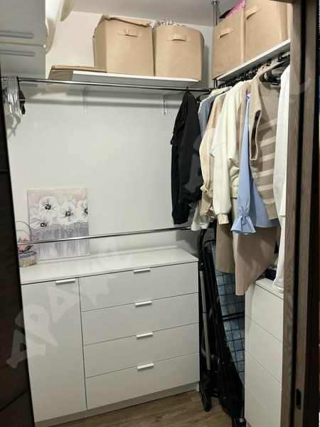 Квартира состоит из двух больших изолированных комнат (16 и 14 квадратов). В каждой комнате есть кровать, шкаф и полочки из Икеи.
