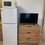 Для проживания есть все необходимые- стиральная машинка, чайник, микроволновка, холодильник, плитка, диван, шкаф, сушилка.