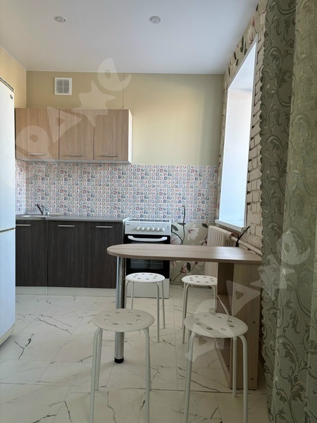 В квартире есть кровать, шкаф, столовый стол, стулья. В квартире: полностью оборудованная кухня (холодильник, плита, посуда), стиральная машина, окна выходят на Монтерскую. Теплая лоджия.
