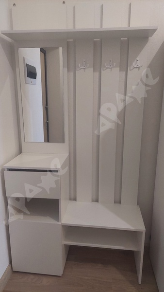 В коридоре полка для обуви, шкаф, вешалка для одежды