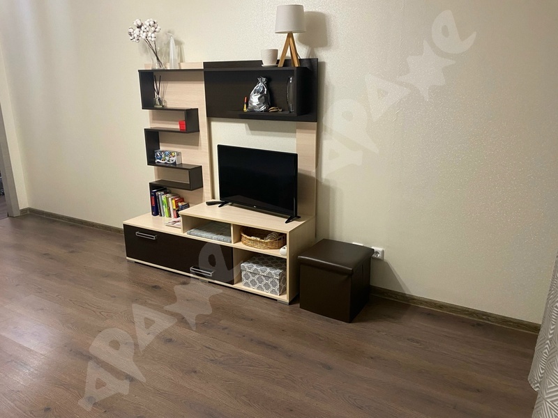 Мебель (кухонный стол и стулья, диван, стенка), имеется большая гардеробная для хранения вещей, кухонный гарнитур. Квартира светлая, уютная и теплая (все как на фото).