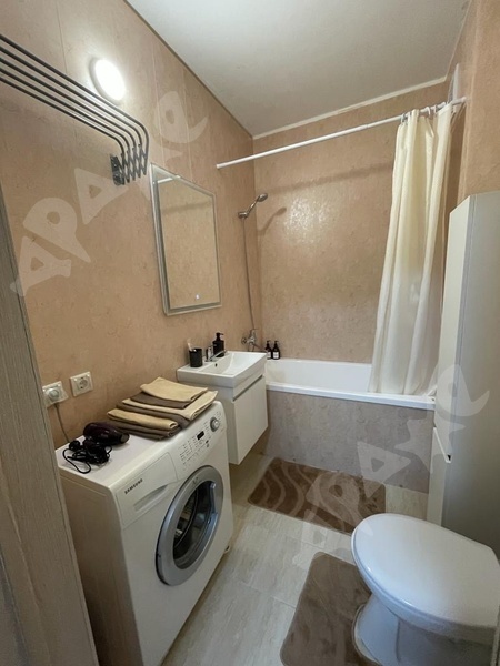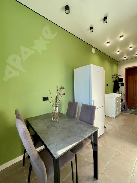 В спальне большая кровать с подъемным механизмом для удобства хранения, уютный диванчик, телевизор и вместительный комод. На кухне встроенная микроволновка, духовка, посудомоечная машина, вытяжка, варочная поверхность и холодильник. В санузле стиральная машина и установлен водонагреватель. Лоджия с панорамным остеклением. Большая гардеробная, для хранения всего…