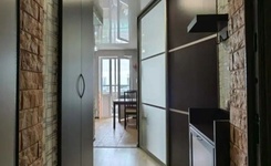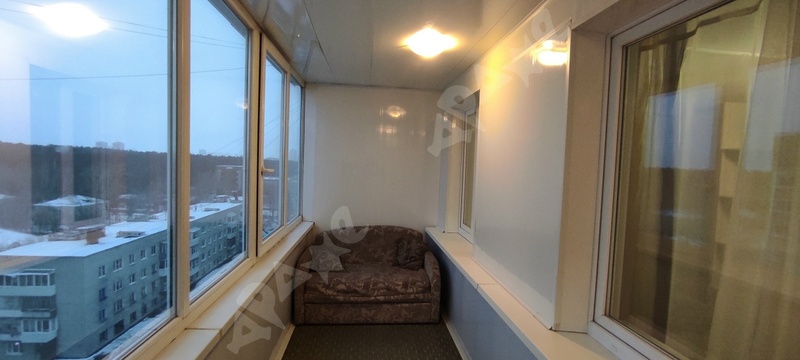 Двуспальная кровать + двуспальный диван. 2 балкона, один из них лоджия, есть кладовка.