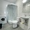 Санузел: плитка в зоне ванны, шкаф для хранения.