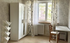 Имеется из мебели/техники: плита, холодильник, стиральная машина, чайник, микроволновая печь, диван, шкаф, письменный стол, стулья. Закрытый двор, парковка. Только на длительный срок.