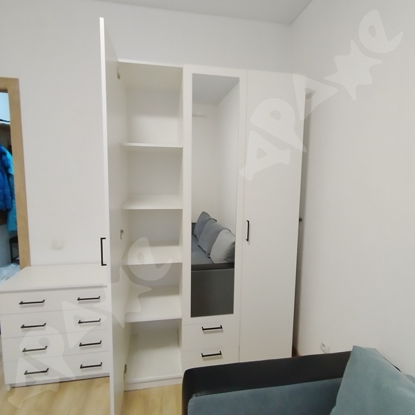 В наличии: холодильник, стиральная машина, пылесос, духовка, газовая плита, гладильня и сушилка для одежды, встроенная система хранения, диван, двухспальная кровать, комод, тумбочка, зеркало, журнальный столик, 2 этажерки, кухонный стол и 2 стула.