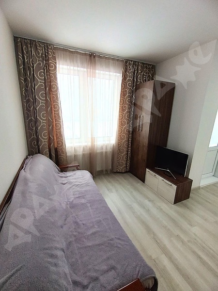 В квартире имеется вся необходимая для проживания мебель. Рядом парк. Большой магазин Окей. Детские сады и школы.