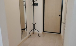 В квартире также имеется очень большой балкон на две комнаты, раздельные туалет и ванна, стиральная машина Bosh и вместительный шкаф с зеркалами в полный рост в коридоре.