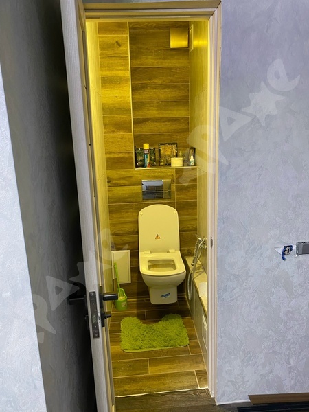 В квартире сделан качественный ремонт, санузел в плитке, кухонный гарнитур с раковиной и варочной поверхность, стиральная машина, пенал в ванной, холодильник, микроволновка, диван, шкаф, кухонный стол, кухонные стулья.