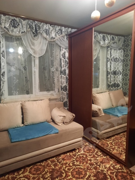 Квартира на 6-м этаже. Есть диван, кровать, холодильник, стиральная машина, микроволновка, шкаф.
