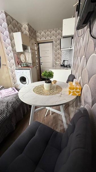 сдаётся небольшая уютная квартира, общая площадь 18кв. м. В квартире произведён капитальный ремонт, есть вся мебель и техника (холодильник, чайник, индукционная плитка, посуда, стиральная машина, микроволновка), есть одеяла и подушки, проведён интернет (оплачивается отдельно) Рядом автобусные остановки, кафе, магазины, в этом же доме пятёрочка. Двор тихий.