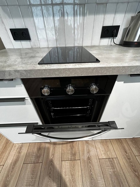На кухне: эл. плита с духовым шкафом, микроволновая печь и все необх. для готовки.