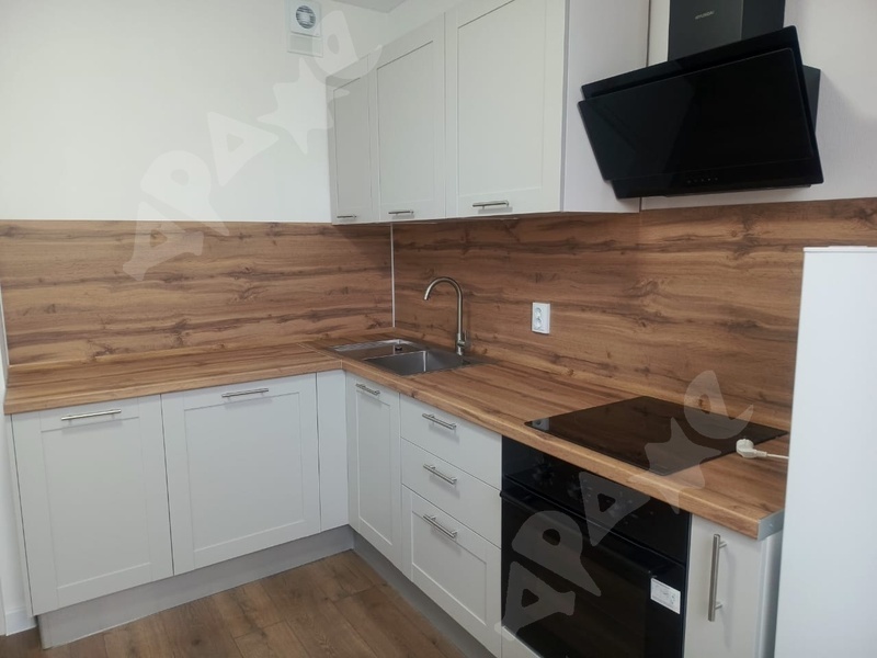 Из техники: чайник, холодильник, стиральная машина, электроплита. Из мебели то, что есть на фото.