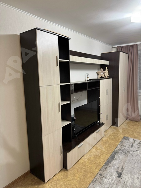 Комната: диван раскладной, комод, стенка, телевизор, шкаф, вентилятор