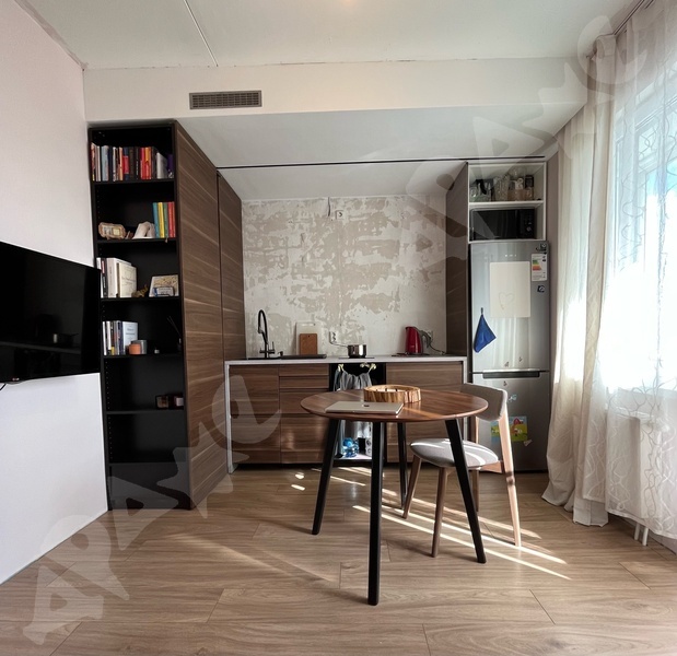 Кухня - гостиная с эргономичной кушеткой, которая раскладывается в спальное место.