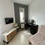 Стол у видового окна, кухонный гарнитур упакован всей необходимой техникой (посудомоечная машина тоже есть). В спальне удобная двуспальная кровать, полноценное рабочее место со стильной настольной лампой и вместительная гардеробная, скрывающаяся за привлекательными жалюзийными дверками.