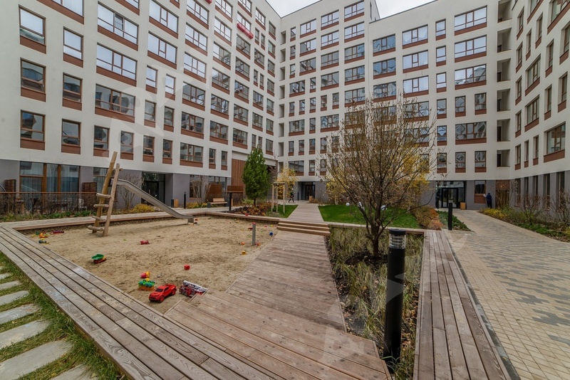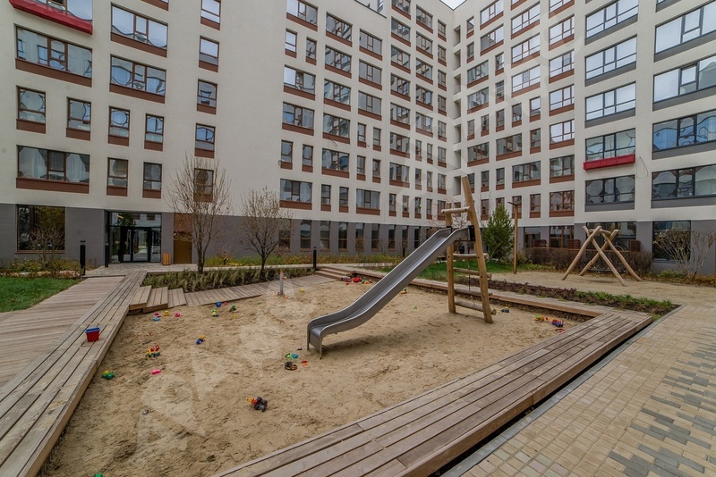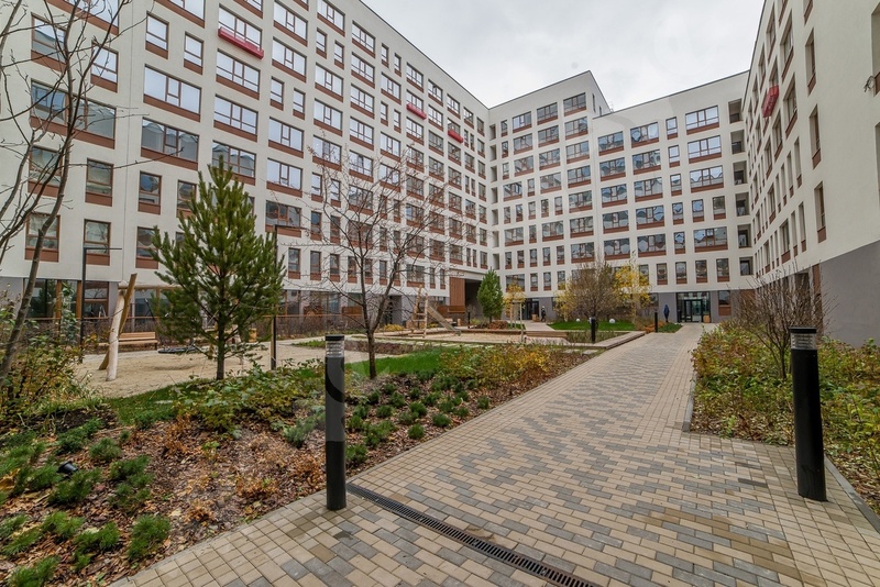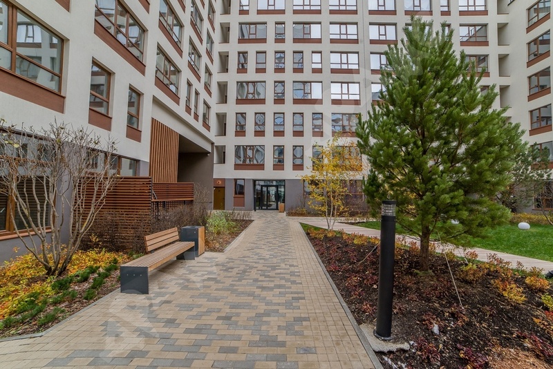 - Выполнено архитектурное озеленение дворовой территории. Весной тон ему задают сирень и черемуха, летом и осенью — яркие астры и астильбы, зимой за счет сосен и высохших многолетних трав палитра меняется на коричнево-зеленую. Ландшафтные архитекторы предусмотрели и лаунж-зоны, где расположили шезлонги, садовую мебель и фонтан.