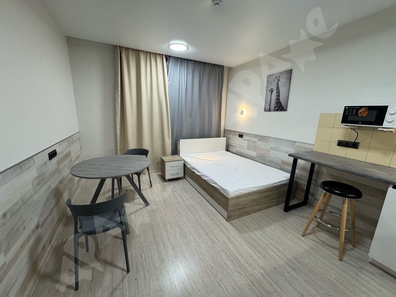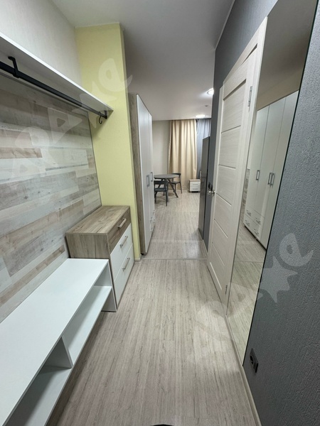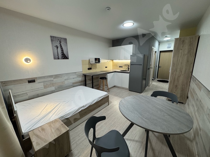 Сдается квартира в новом доме. Квартира «студия». Состояние отличное, ремонт выполнен по авторскому дизайн проекту. В квартире есть: двуспальная кровать 1,4 метра на 2 метра с качественным матрасом, двуспальный диван, холодильник, стиральная машина, микроволновка, варочная поверхность, просторный шкаф, несколько комодов, стол, барная стойка, ростовое зеркало, шторы. Смотрите видео, там всё подробно показано и рассказано.