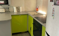Сдам 1 комнатную квартиру (45 кв.м.) на 6 этаже. Квартира очень светлая и теплая. В квартире есть стиральная машина, холодильник, эл.плита с духовкой. Из мебели:кухонный гарнитур, встроенный шкаф, диван, стол.
