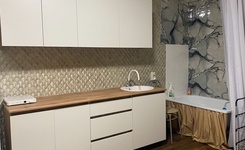 Мебель: шкаф, кровать, обеденный стол, прихожая, кухонный гарнитур, новая посуда, постельное белье, одеяла, подушки, микроволновка, индукционная плитка, чайник, всё новое, холодильник.