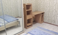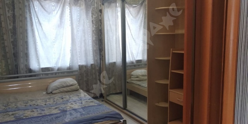Площадь комнаты 12кв м. квартира на 4-м этаже, из мебели в комнате есть двухспальная кровать, шкаф,стол, стул. В квартире есть холодильник микроволновка, стиральная машина, газовая плита.
