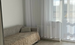 Сдам 1 комнатную квартиру (45 кв.м.) на 6 этаже. Квартира очень светлая и теплая. В квартире есть стиральная машина, холодильник, эл.плита с духовкой. Из мебели:кухонный гарнитур, встроенный шкаф, диван, стол.