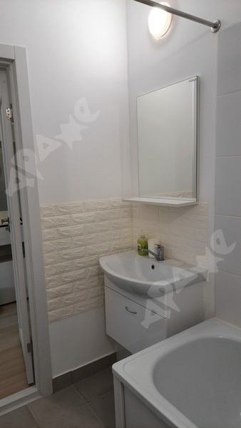 Этаж 4, в 25-и этажном доме. В квартире есть сантехника, тумба с раковиной в зоне кухни, диван.