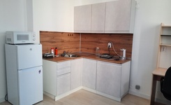 Имеется вся необходимая мебель для комфортного проживания ( 2 спальный диван, шкаф-гардероб, кухня, стол) и техника – эл.плитка, чайник, холодильник , стир. машина- автомат.