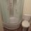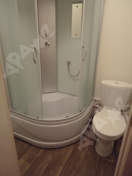Этаж 4, в 25-и этажном доме. В квартире есть сантехника, тумба с раковиной в зоне кухни, диван.