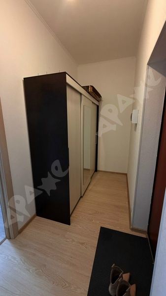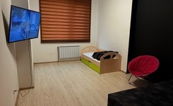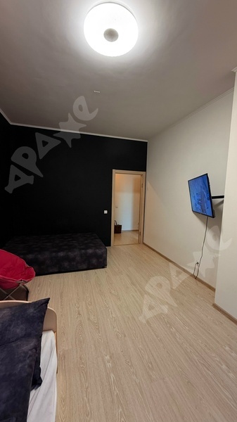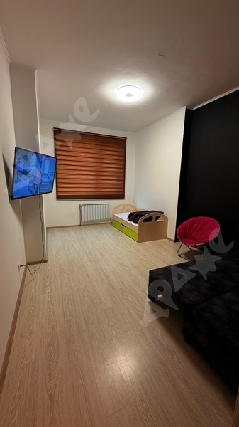 13 этаж, есть диван, холодильник, стиральная машина, кухонный гарнитур с плитой, микроволновка, места для хранения одежды, телевизор, возможно установить дополнительное спальное место.
