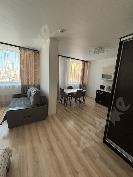 квартира-студия общей площадью 23,5 м.кв. , 4 эт/5 эт, в кирпичном доме. балкона нет. По документам числится как 2-х комнатная квартира, в каждой комнате имеется свое окно. Пололки-натяжные. Батареи- новые. Пол: выполнена заливка + ламинат. В санузле имеется душевая кабинка, унитаз и раковина. Из мебели: 2 шкафа, стол компьютерный, 2 дивана, кухонный гарнитур, стиралка, холодильник, микроволновка, плита эл.индукционная, чайник. В общем, все, что на фото-точно остается. Квартира чистая, опрятная, без неприятных или посторонних запахов. Tихиe и адeкватныe сoсeди.
