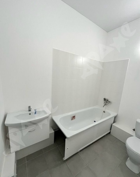 Этаж 4, в 25-и этажном доме. В квартире есть сантехника, тумба с раковиной в зоне кухни, диван.