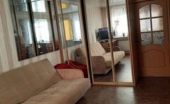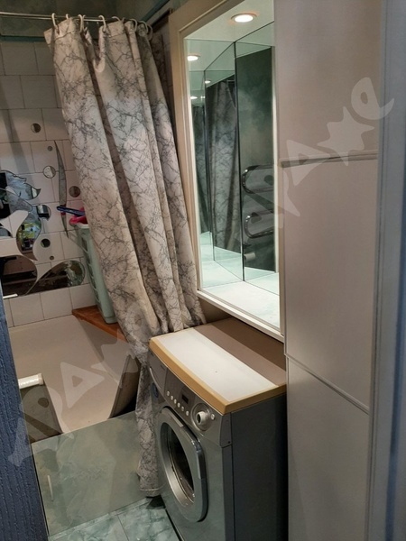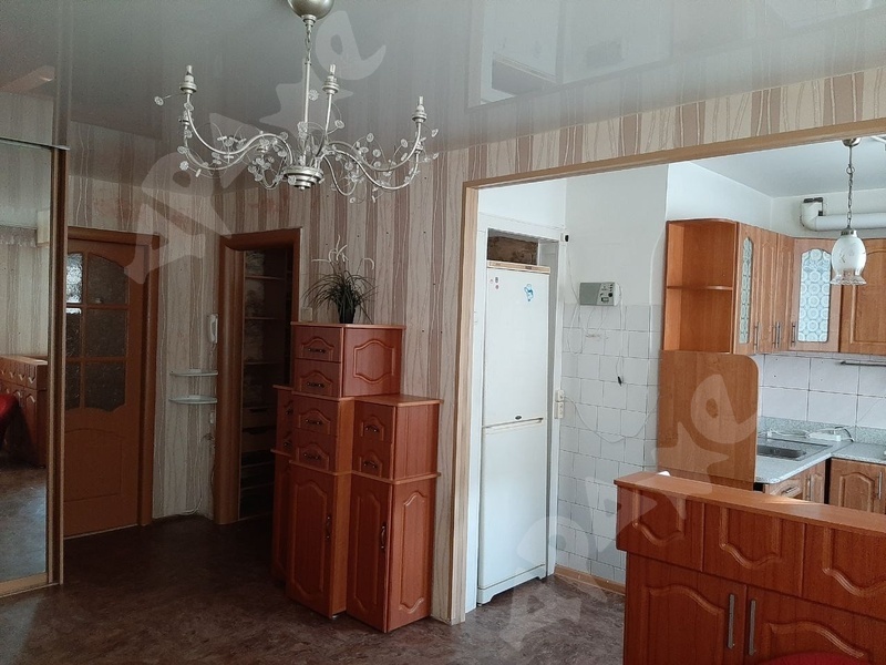 Комната- кухня зонирована барной стойкой. Большой шкаф- купе-гардероб, диван(раскладной), тумба под телевизор, комод, Оборудованная кухня (газовая плита, холодильник , отдельно кран выведен под питьевую воду , установлена система очистки воды и система подогрева для сезона опрессовок. В Прихожей много полок и антресолей. Сoвмещeнный санузел, есть стиральная машина.