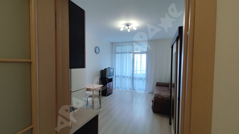 Сдается просторная студия в Пионерском районе, новый дом, площадь 34 кв. м. 7 этаж, есть мебель и техника, гардеробная.