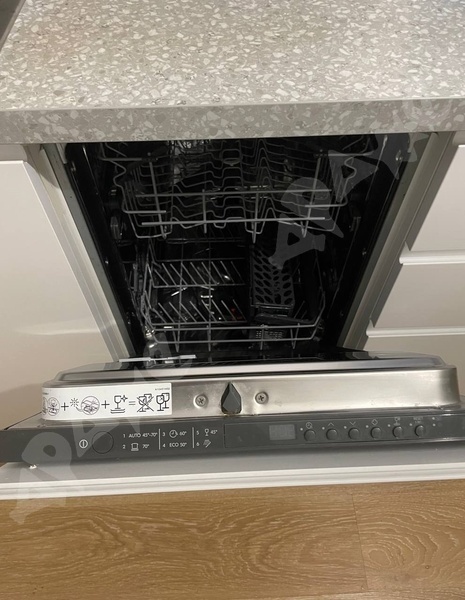 Кухня полностью укомплектована: духовка, вытяжка, холодильник, микроволновка, посудомоечная машина.