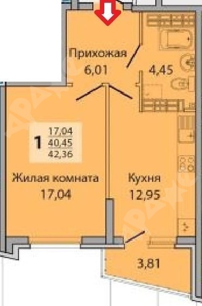 1-комн. квартира 35 кв.м. (евродвушка, кухня-гостинная и спальня)