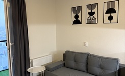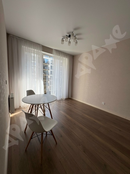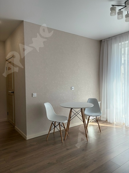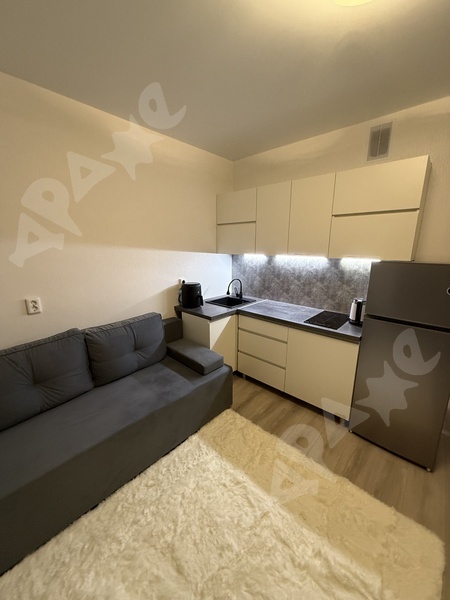 Квартира на 22 этаже с панорамным видом на город, на солнечной стороне, абсолютно новая, ранее никто не жил, полностью мебелированная со всей необходимой техникой, две изолированные комнаты (кухня-гостиная и спальня).