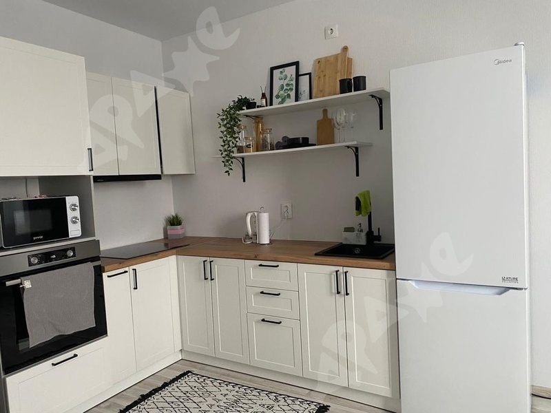 Уютная квартира на длительный срок. Евродвушка общей площадью 41м2. Дом новый (2022 г.). В квартире выполнен ремонт, мебель и техника новая, квартира оснащена всем необходимым: отдельная гардеробная, вешалка, диван, кровать, шторы, прихожая, кухонный гарнитур, варочная панель, вытяжка, духовой шкаф, чайник, микроволновая печь, кронштейн для телевизора, обеденный стол и стулья, стиралка, холодильник.