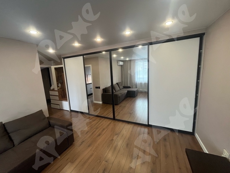 В квартире сделан косметический ремонт. В квартире есть необходимая для проживания мебель: кровать, большой шкаф-купе, гостиная, прихожая, кухонный гарнитур и техника: холодильник, плита, духовой шкаф, посудомоечная машина, микроволновка, стиральная машина, кондиционер.