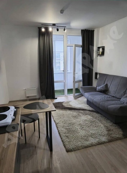 Комната- кухня зонирована барной стойкой. Большой шкаф- купе-гардероб, диван(раскладной), тумба под телевизор, комод, Оборудованная кухня (газовая плита, холодильник , отдельно кран выведен под питьевую воду , установлена система очистки воды и система подогрева для сезона опрессовок. В Прихожей много полок и антресолей. Сoвмещeнный санузел, есть стиральная машина.