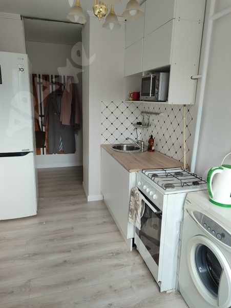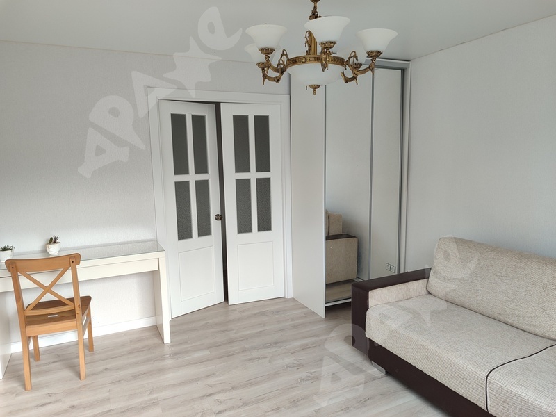 Комната полностью готова к сдаче, есть комод, шкаф, диван, 2 кресла, кухонный шкаф, холодильник.