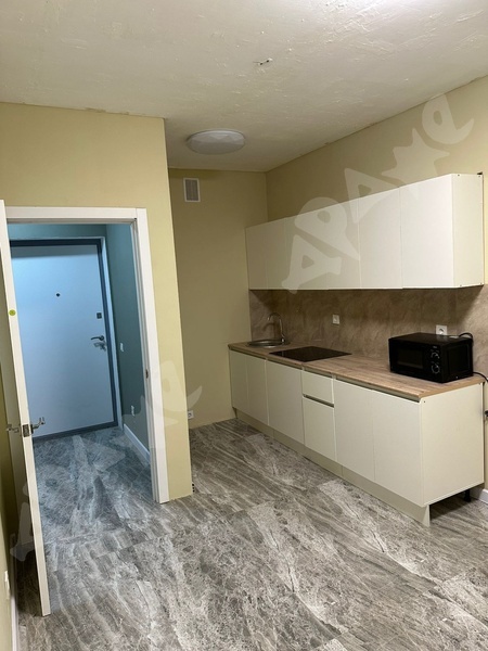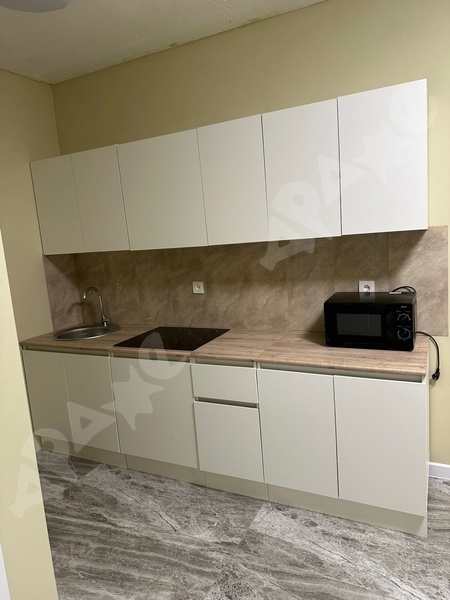 Установлен кухонный гарнитур с плитой. Холодильник тоже будет, стиральная машина есть. Необходимый минимум мебели готовы предоставить