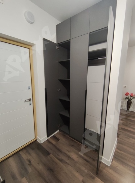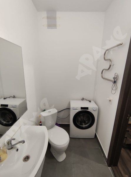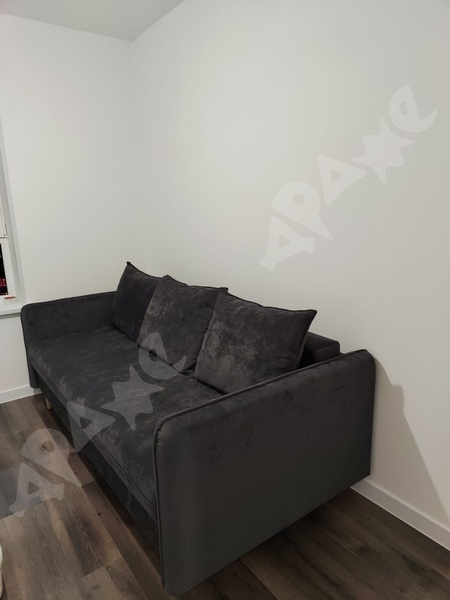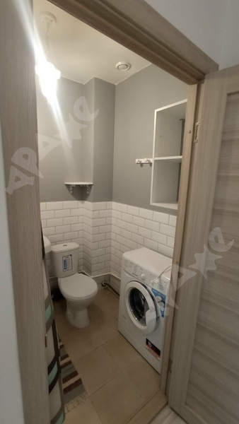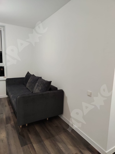 Квартира на 22 м этаже, из мебели есть диван, шкаф, кухня, холодильник , стиральная машина, стол, стулья.